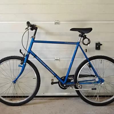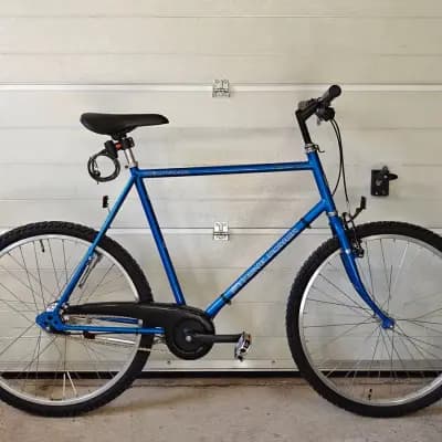 Helkama Strong Power pirteän sininen 7-vaihteinen ATB-/hybridipyörä. Renkaat 26". Helkaman suositus kuskin pituudelle +170cm, mutta suurempaa runkokokoa ei taida olla ollut joten ylärajaa ei liene... Säädöt saa kohtuulliseksi vielä lähes 2m kuskille. Takana Shimano Nexus kappavaihteet ja jalkajarru, etujarru modernisoitu tunnokkaammaksi v-jarruksi. Puhdas ja keväthuollettu laajasti, säädöt on kohdillaan eli suoraan ajoon! Ulkorenkaat, kahvat, ketjut ja etujarrupalat juuri uusittu. Pinnoissa vähän kolhuja ja patinaa, mutta ei mitään suurta. Alkuperäiseen kiinteään runkolukkoon löytyy yksi avain, teettämällä saa lisää. Mukaan saa halutessaan alkuperäiset lokarit ja tavaratelineen, myös asenettuna! MYÖS VAIHTOA voi ehdottaa korjaustakin vaativaan pyörään, mitä isompi runko sen parempi.