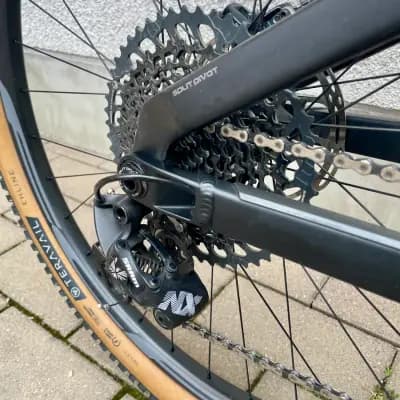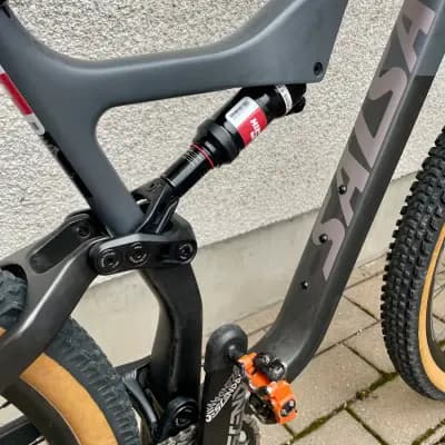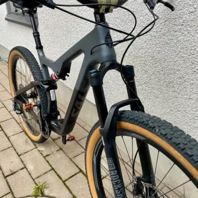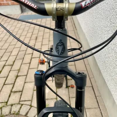 Erittäin hyväkuntoinen hiilikuituinen Salsa Horsethief täysjoustopyörä johon on alkuperäisistä osista vaihdettu hiilikuituun ohjaustanko, vanteet (+navat) sekä litkutetut 29x2,5 renkaat. Täyshuolto sis. molemmat jouset tehty hi5bikes viime kauden jälkeen ja nyt keväällä lisätty uudet litkut renkaisiin. Alla tuota osaluetteloa, jonka poimin netistä englanniksi johon lisäsin nuo osapäivitykset. Kuvissa näkyvät polkimet eivät kuulu kauppaan. Pyörään löytyy lisäksi Salsan omat tähän malliin tehdyt iso runkolaukku sekä ruuvi kiinnitteinen pienempi toptube laukku, joista voidaan keskustella erikseen jos ne kiinnostavat/eivät sisälly kauppaan (ks. viimeinen kuva /bikebacking). Itse olen 186 cm ja arvioisin että pyörän mitat sopivat +/- 5 cm molempiin suuntiin. Myynnin syynä siirtyminen poluilta hiukan "tasaisemmille" pyöräilyalustoille. Pyörä on hankittu Turun Foxcompista ja olen sen toinen omistaja. Pyörä sijaitsee Vantaalla ja testiajot järjestyvät joustavasti. Size L (Low, High) Wheel Size 29" Frame Material Carbon Fiber Frame Material Details EPS carbon main triangle with carbon seat stays, 6066 T6 aluminum chain stays Rims FCF Carbon Tyres Teravail Ehline 29x2,5, tubeless Hubs Rear Industry Nine Componentry, Front Hope Pro 4 Rear Travel 120mm Rear Shock RockShox Deluxe RT3 Fork RockShox Revelation RC, 15x110mm, 42mm offset Fork Travel 140mm Head Tube Diameter Tapered, top: 1.125'', bottom: 1.5'' Headset Cane Creek 40 Dropper post TranzX Handlebar Renthal Fatbar Carbon 35 Stem Salsa Guide Trail, 50mm length Grips Salsa File Tread, lock-on Brakes SRAM Guide T, 180mm rotors Brake Levers SRAM Guide T Drivetrain 1x Shifters SRAM NX Eagle 12-speed Rear Derailleur SRAM NX Eagle 12-speed ISCG Tabs ISCG 05 with modular plate cover for when tabs are not in use Cranks SRAM Descendant 7k, 175mm Chainrings 32 tooth direct mount Bottom Bracket SRAM DUB Pedals N/A Chain SRAM NX Eagle 12-speed Cassette SRAM PG-1230 Eagle 12-speed, 11-50 tooth